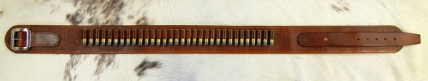 Description: Designed for the large straight wall Sharps and Winchester cartridges, and are not available for the more modern rimless or bottleneck ammunition. Depending on your waist size, these belts will accommodate up to 24 pistol loops. The width of this belt depends on the length of the rifle cartridge it will be used with.